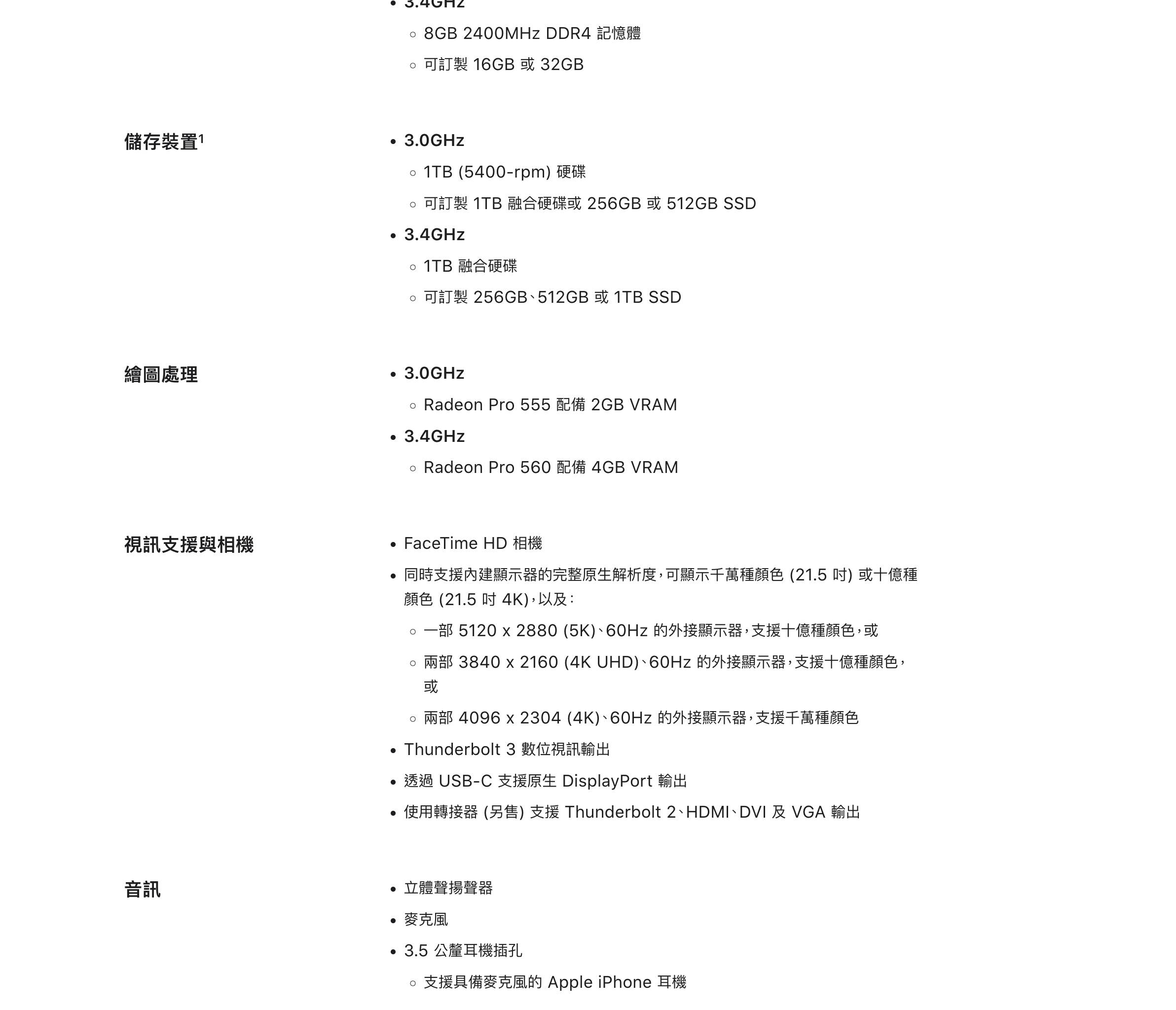 規格:Apple iMac 27吋 5K i5 3.3G 32G 1TB 2015年款 A1419