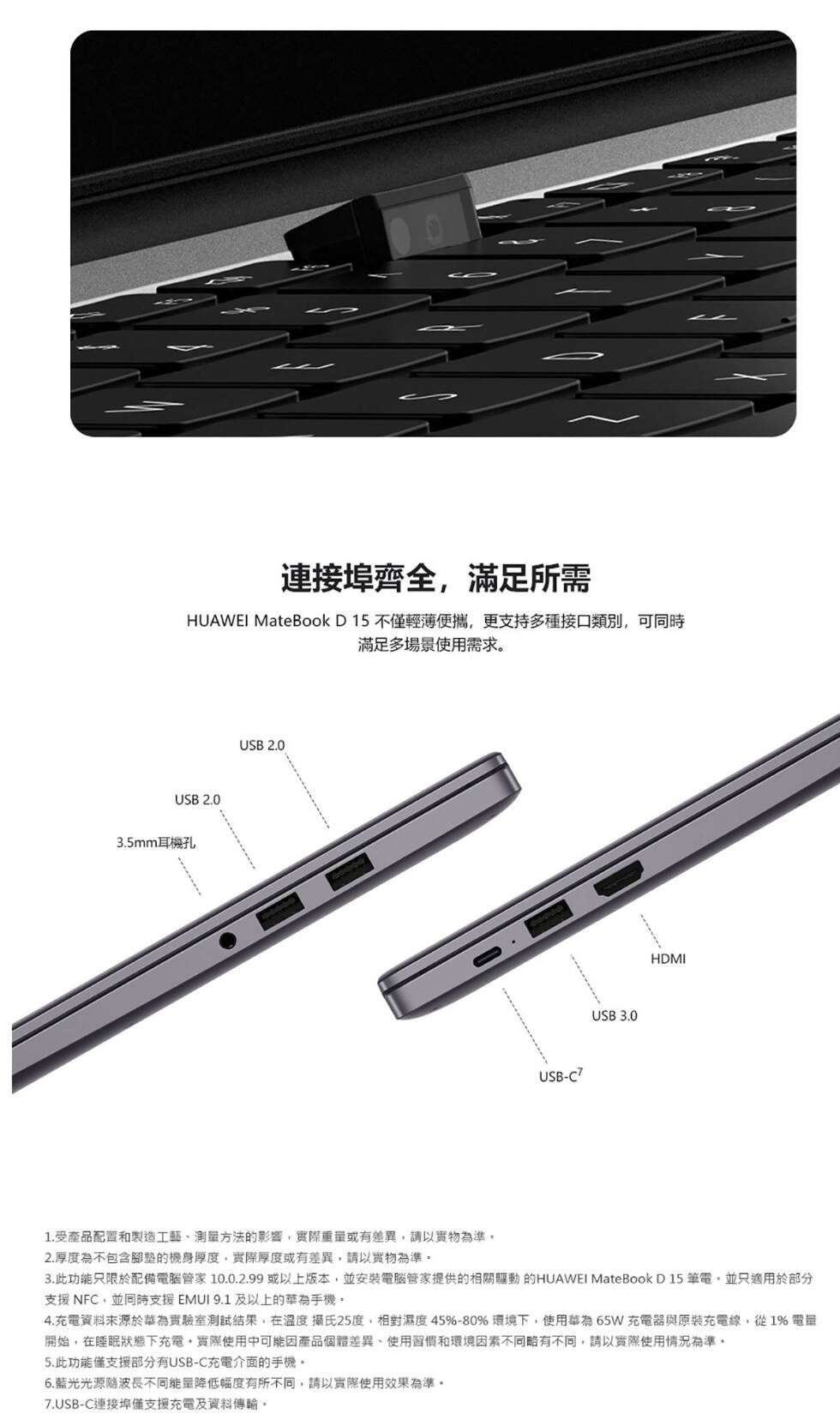 出清搶購!HUAWEI MateBook D15 15.6吋 R5-3500U 8G 512G SSD 內顯