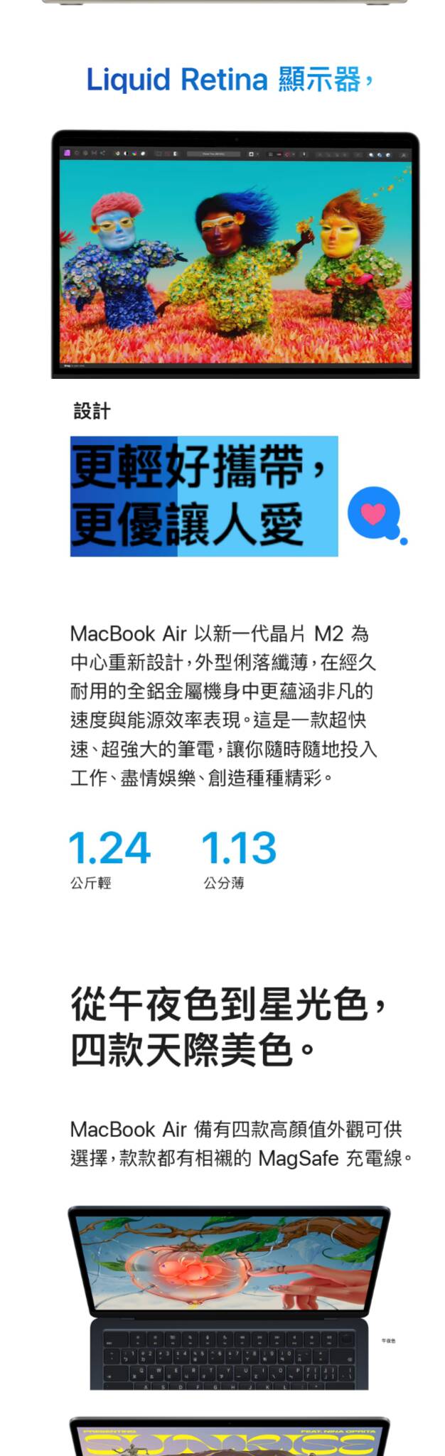 ●配備 Apple 最新的 M2 處理器,提供更強大的運算能力和更高效的能源管理