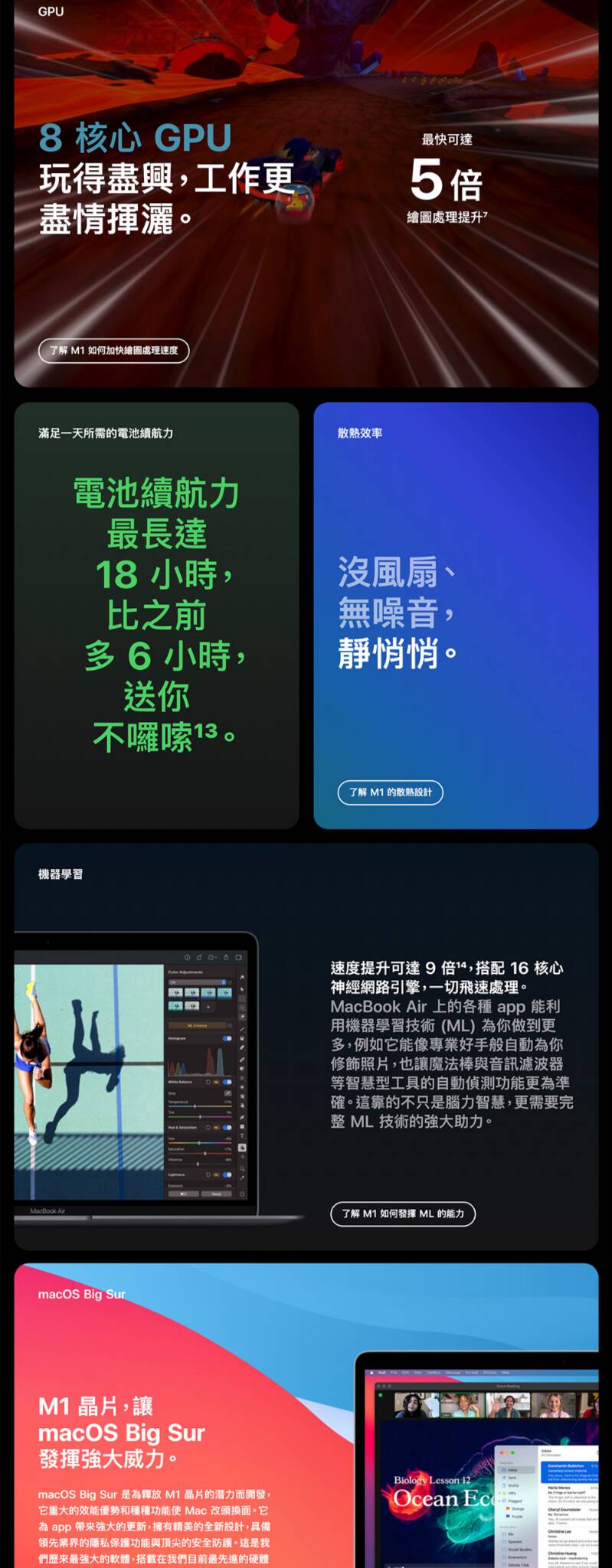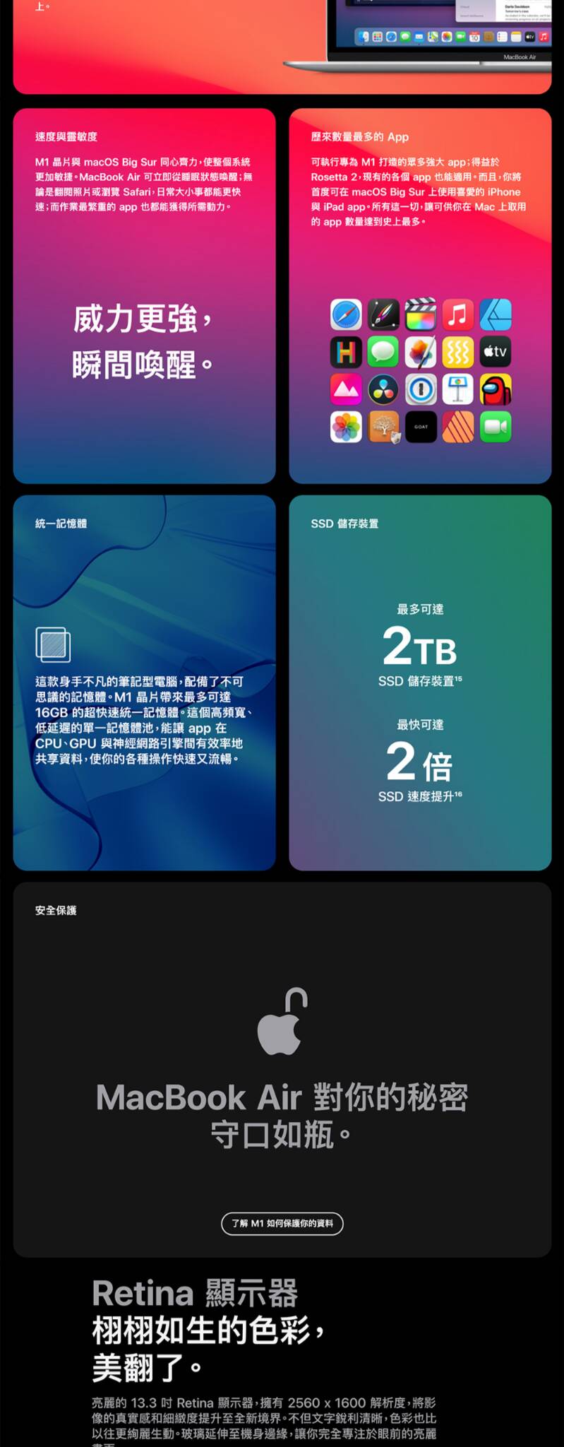 ●內建 Apple M1 晶片、8GB RAM + 256GB SSD