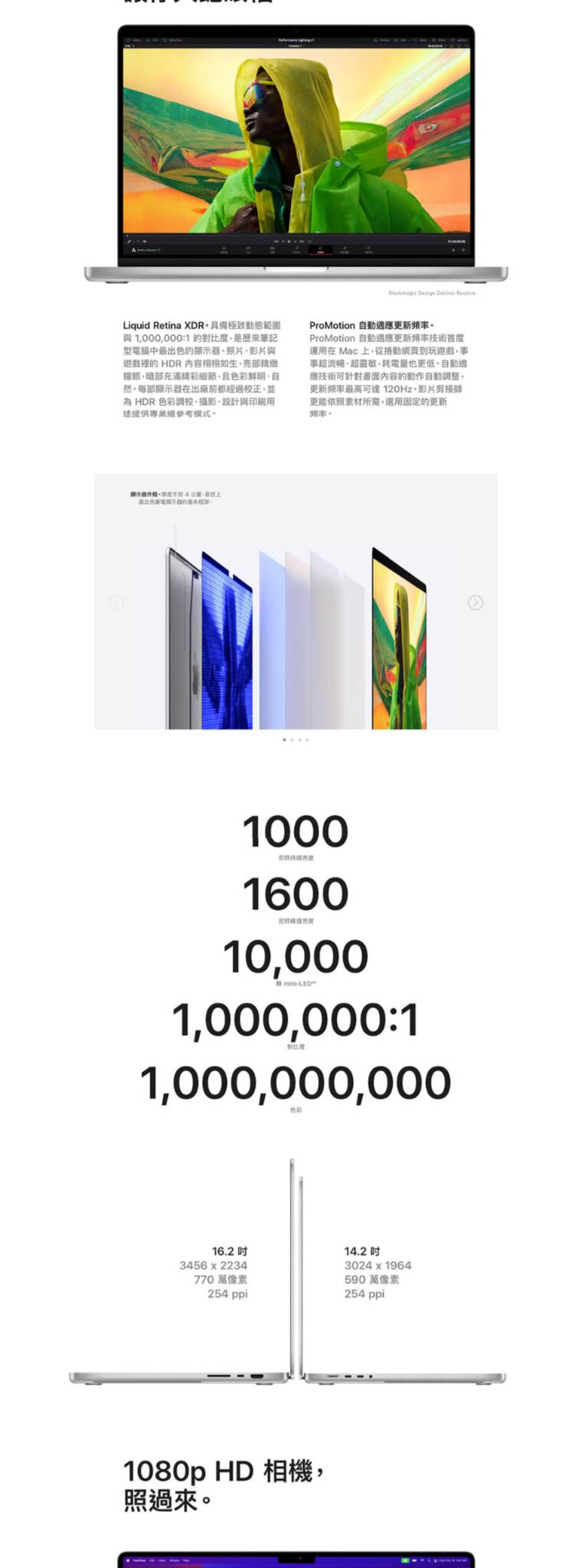 ●14 吋 Liquid Retina XDR 顯示器,細節逼真、亮度高達 1000 nits