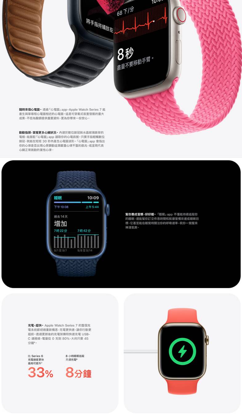 Apple Watch S7 45mm LTE版 鋁金屬 睡眠監測 心率感測器