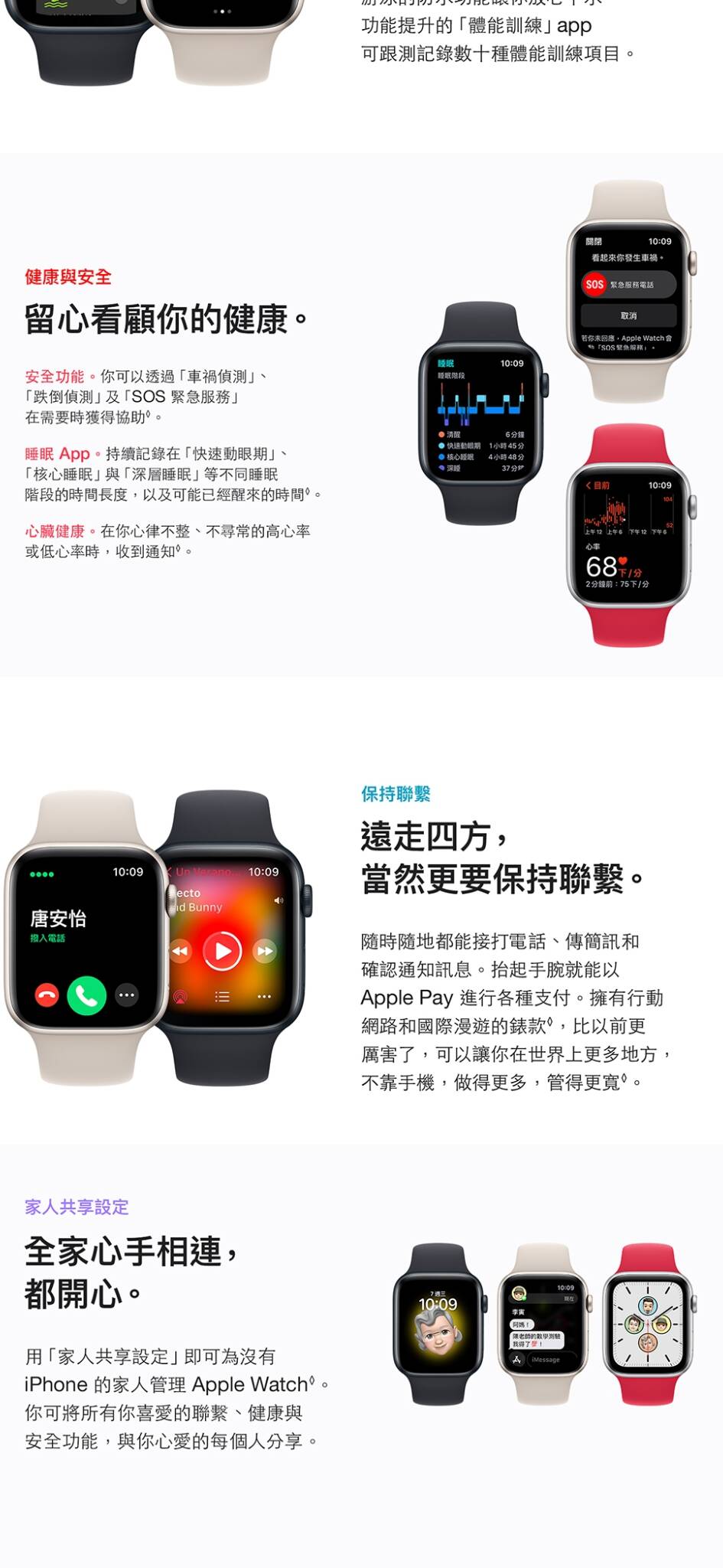 ●健康與安全監控:含有第二代光學心率感測器、跌倒偵測、緊急 SOS 與國際緊急呼叫功能,全方位守護使用安全。