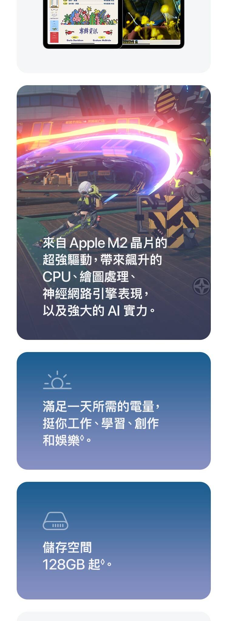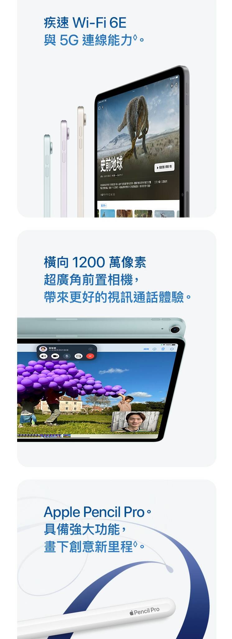 ●支援 Apple Pencil (第2代) 與 巧控鍵盤,提升創作與工作效率