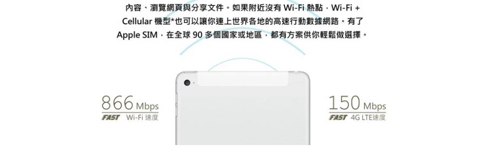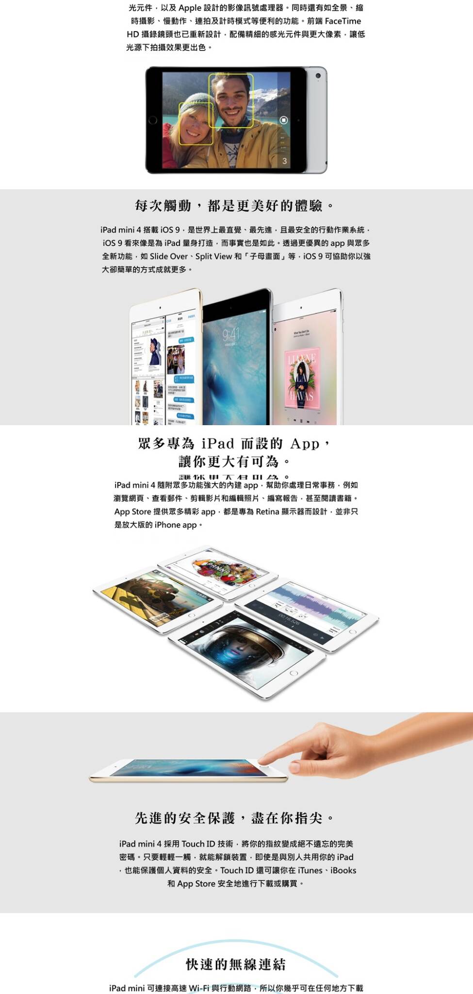 Apple iPad mini 4 128G LTE版 7.9吋平板 800萬畫素 A8晶片 平板電腦