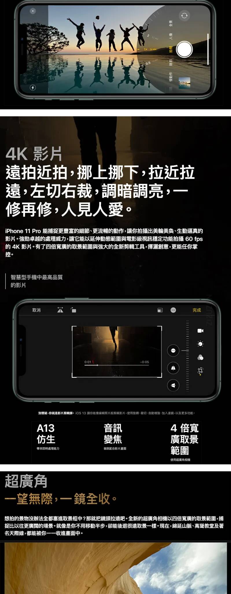 Apple iPhone 11 Pro 64G 1,200萬畫素 Face ID臉部解鎖