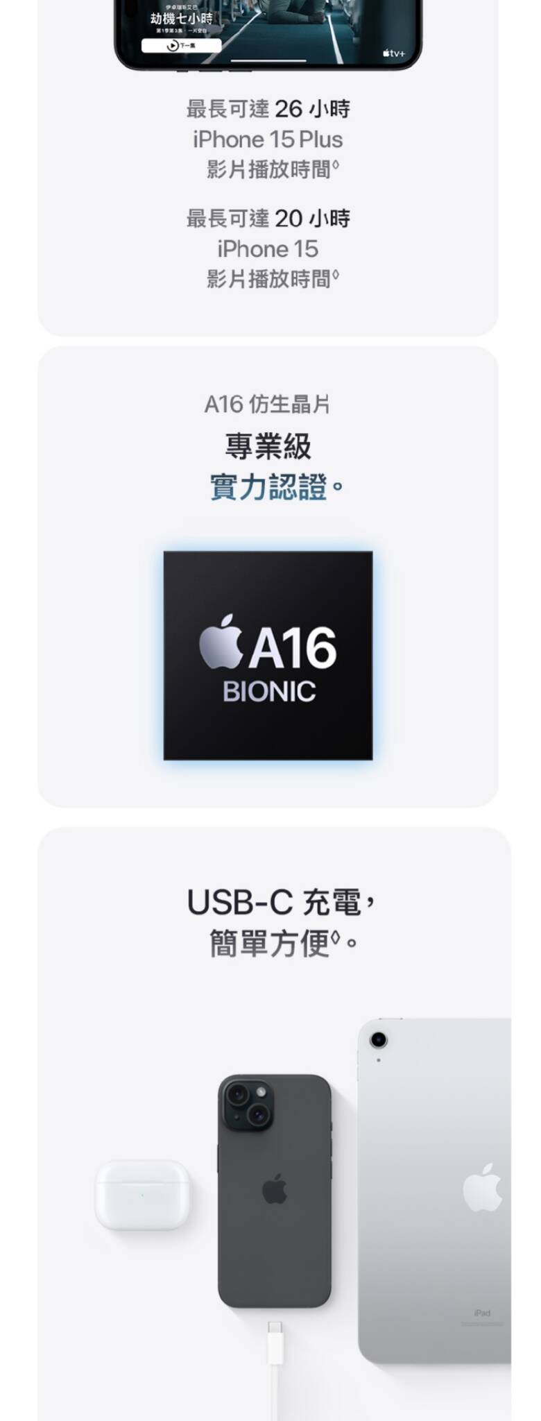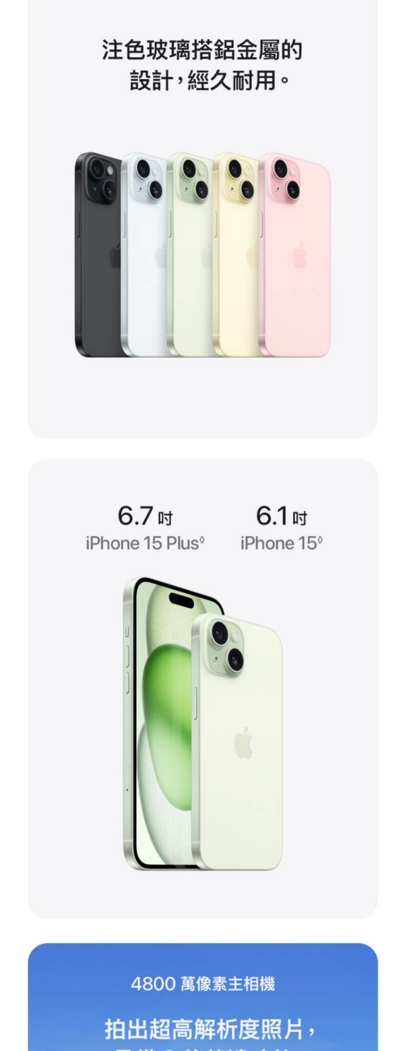 Apple iPhone 15 256G A16仿生晶片 IP68防水防塵 4,800畫素後鏡頭