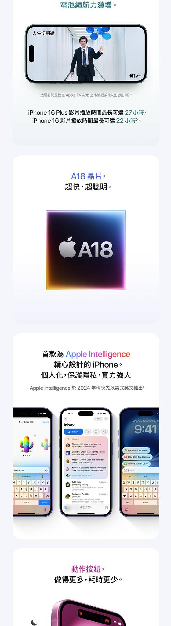 Apple iPhone 16 Plus 128G 6.7吋螢幕 A18仿生晶片 4800萬像素主相機