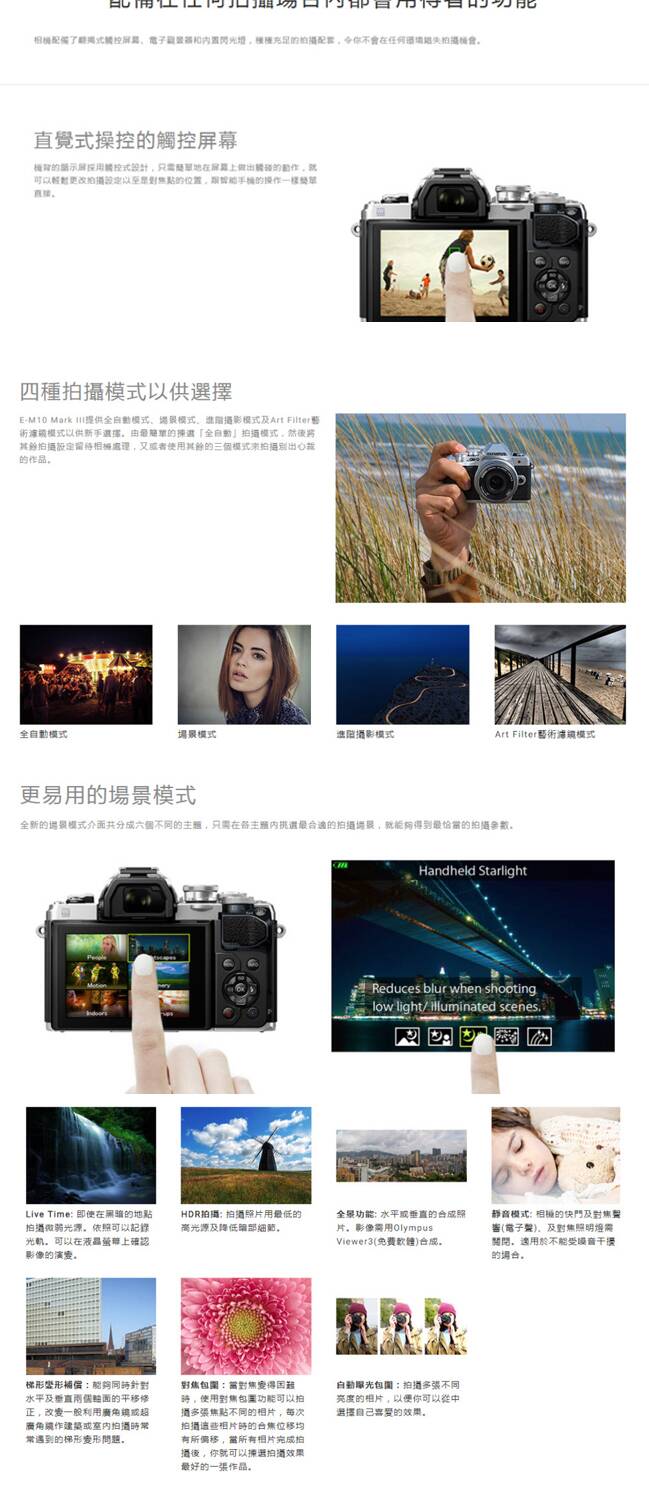 Olympus OM-D E-M10 Mark III 四種輔助拍攝模式 1605萬像素 5軸4級防震