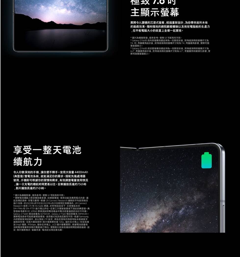●全新「水滴型」轉軸設計: 採用新一代 Flex 轉軸,實現了完全平整的摺疊收合,不僅機身變薄、手感更好,還能有效減少螢幕摺痕並降低灰塵進入的機率。