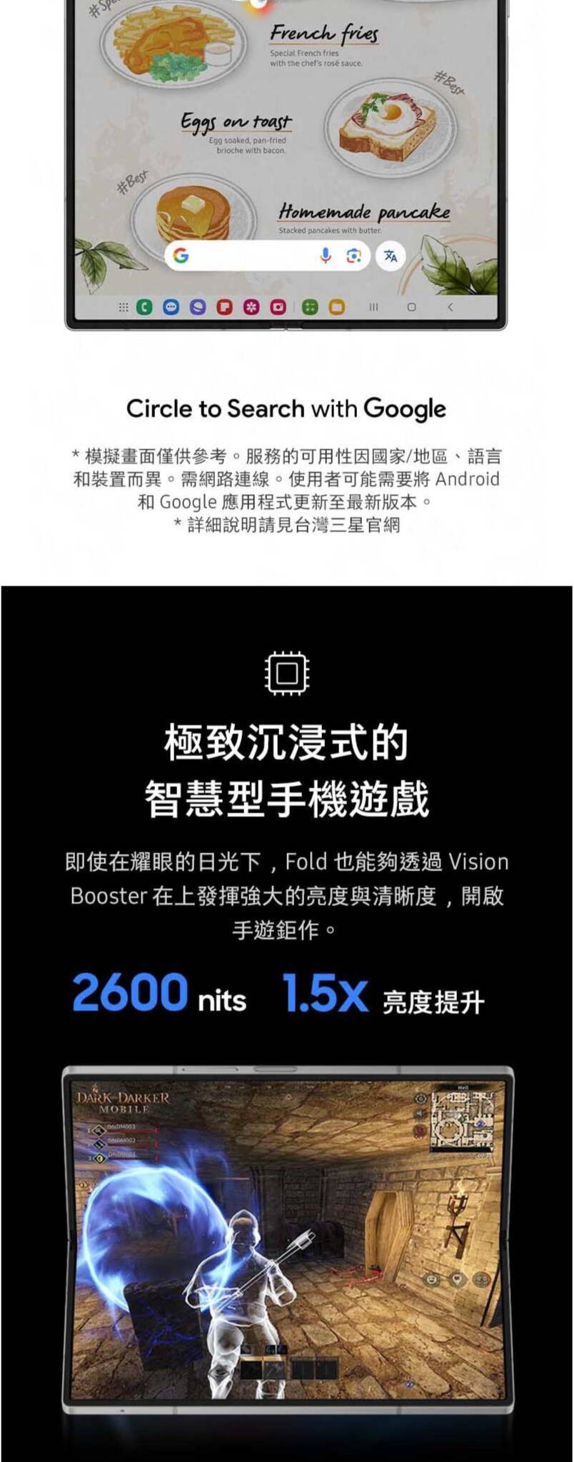 ●7.6 吋可折疊 AMOLED 主螢幕:支援 120Hz 高刷新率與 HDR10+ 技術,無論是多工操作還是觀看影片,畫面都細膩流暢