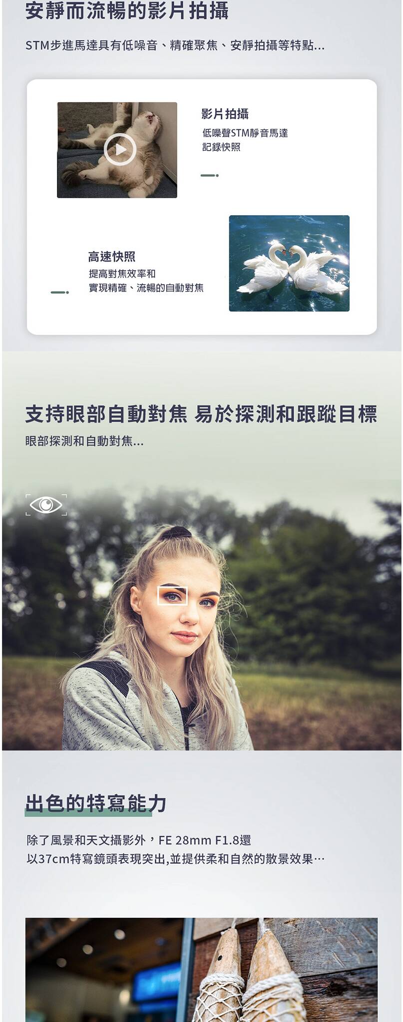 ●STM 靜音對焦馬達:自動對焦快速且安靜,適合拍攝影片和需要靜音的場景